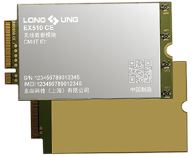 EX510CE 無線模塊是龍尚科技研發的一款支持 5G NR/LTE-FDD/LTE-TDD/ WCDMA/GNSS 等多個頻段的 M.2 接口通訊模塊